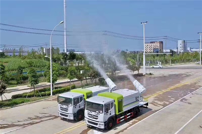 罐體容積10方,噴霧機最大射程可達80米,可選裝30-80米噴霧機,噴霧流量1m3/h(節水可調),水平旋轉360度可調,俯仰角度可調為-10°-45°,覆蓋面廣,水平旋轉180度,控制范圍大;霧粒為30-200微米,流量可根據客戶要求調節;可實現遠程遙控。灑水寬度可達14米,高壓水槍垂直射程近30米,雙向側噴寬度20余米。